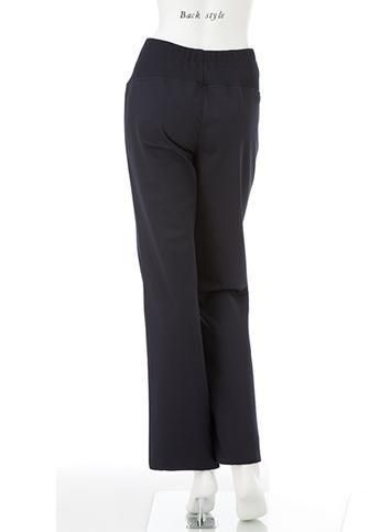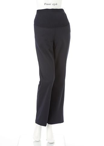 - 調節できるウエストゴム仕様、おなか部分リブ仕立て、ストレートシルエット、ポケット無しノータック